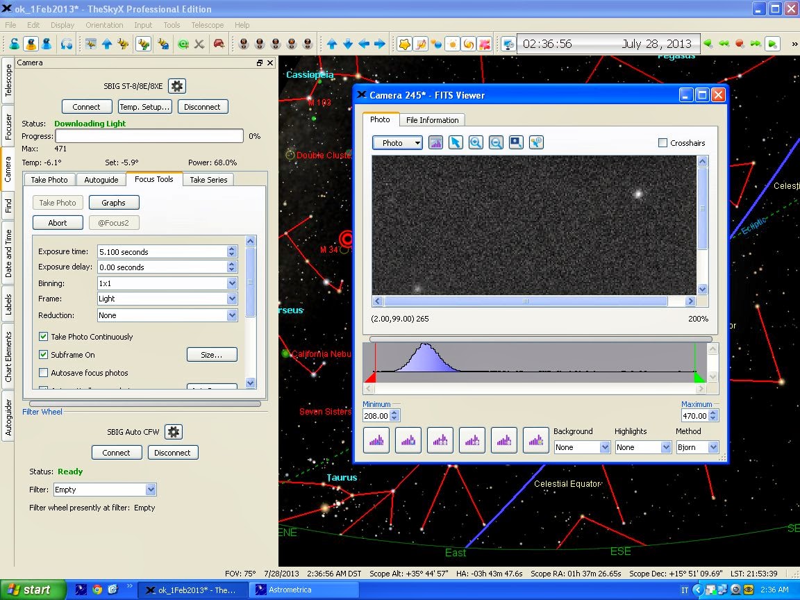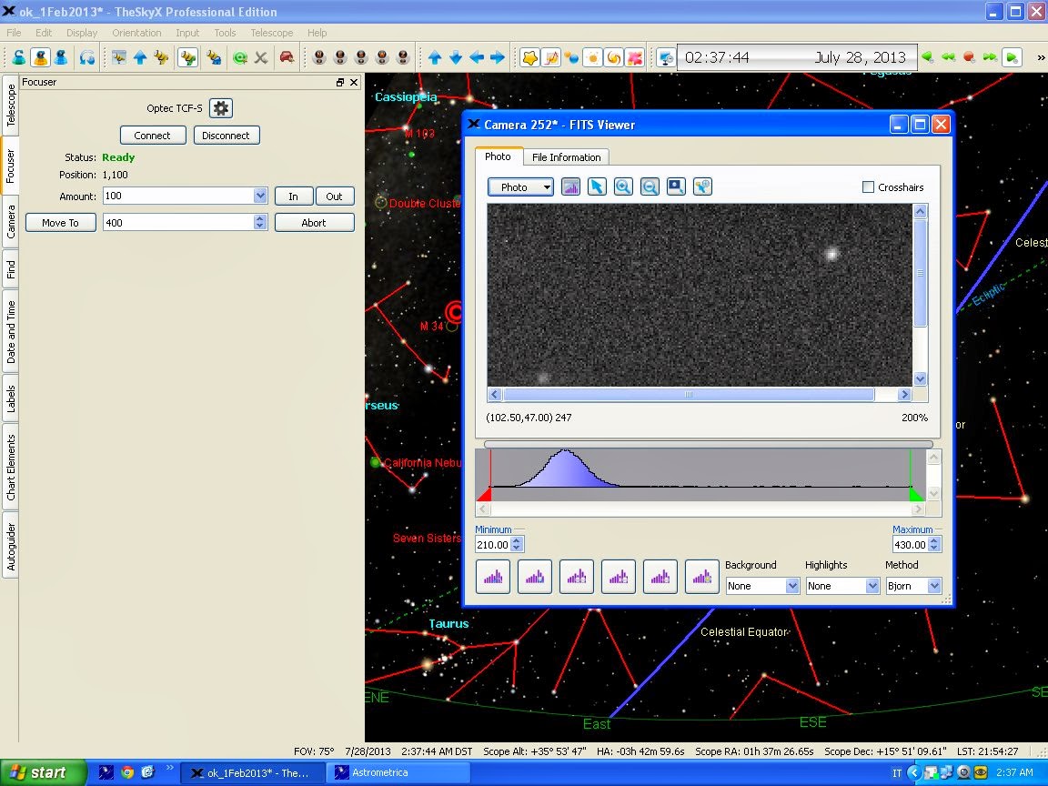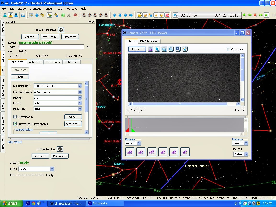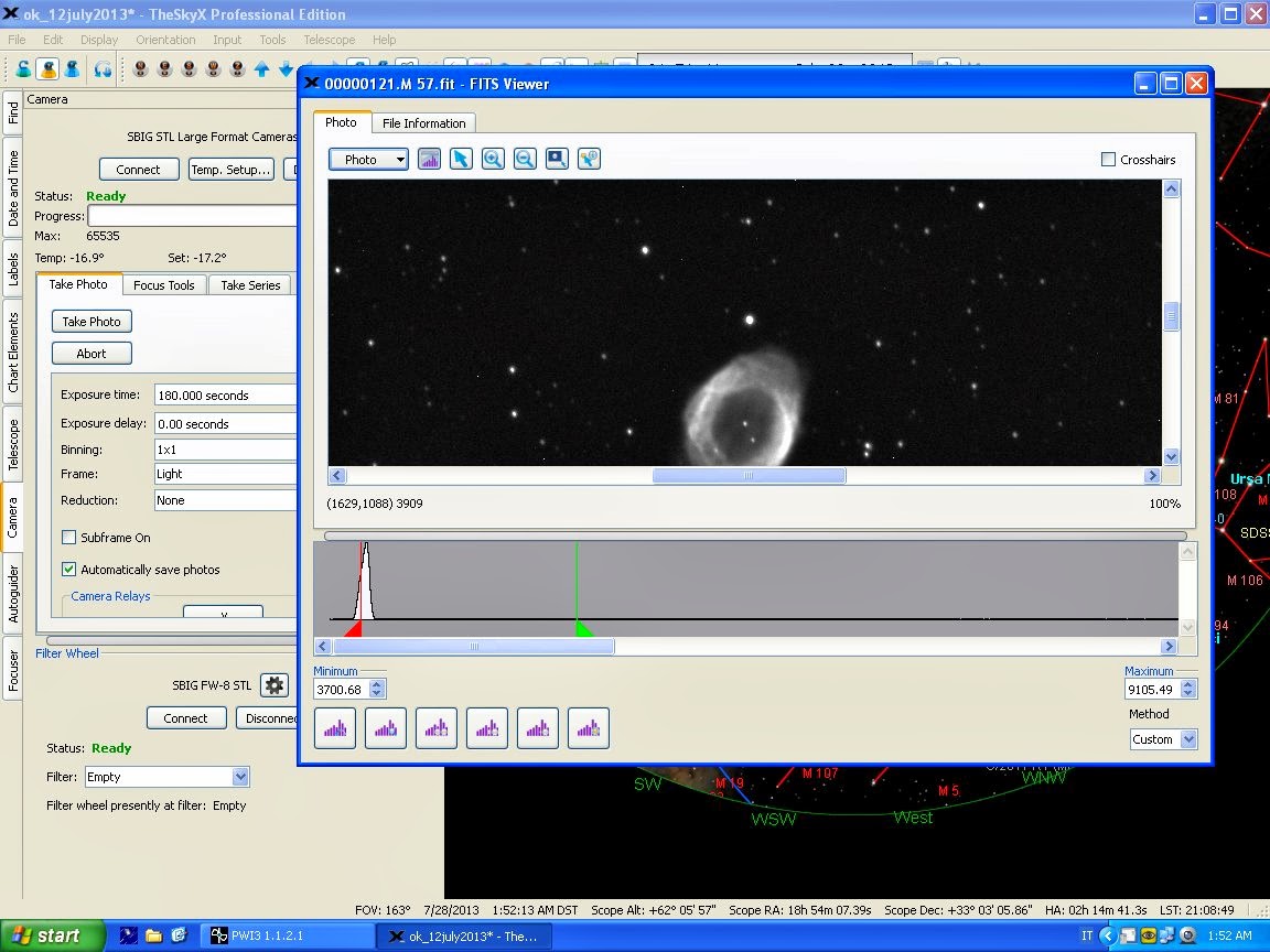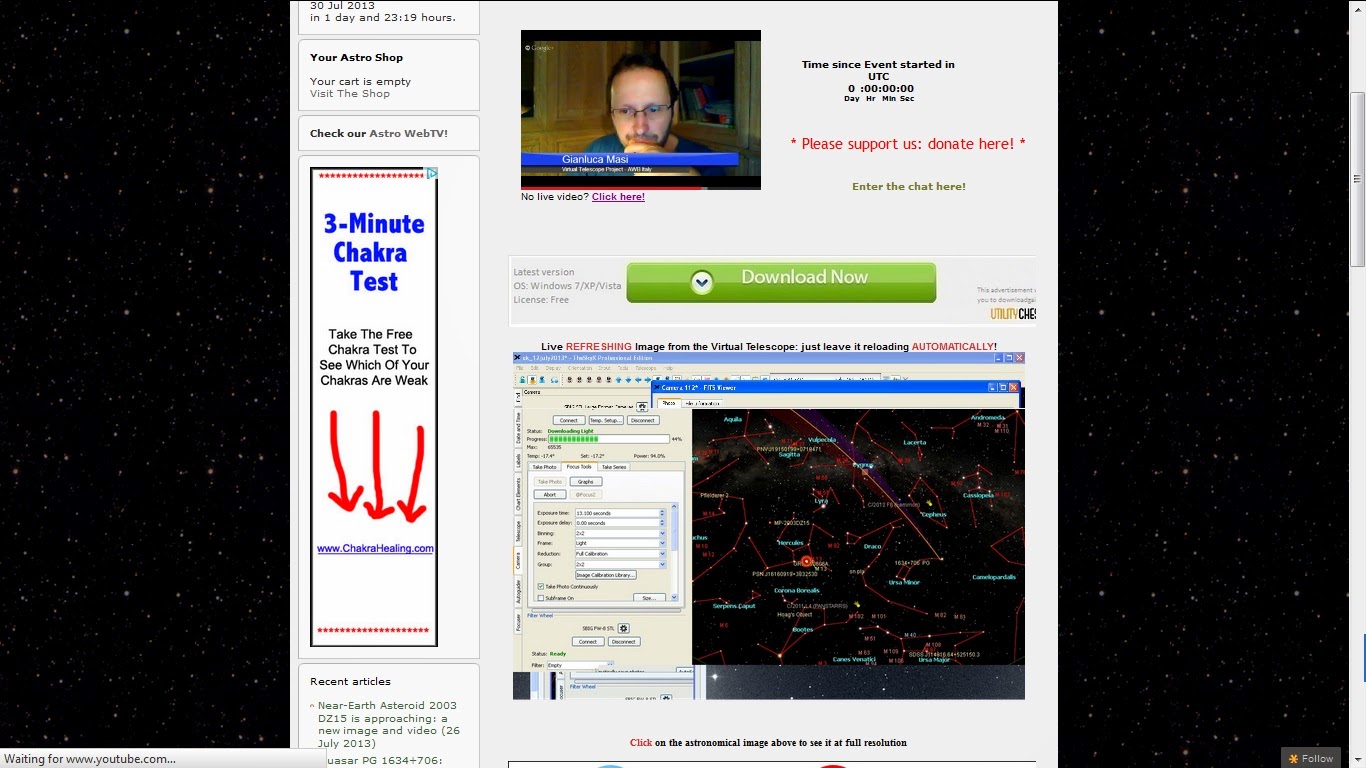 The 27 Jul. 2013, at 22:45 UT the trip started, under excellent sky in Ceccano, Italy, where the Virtual Telescope facility in installed. We used the PlaneWave 17″ robotic unit.