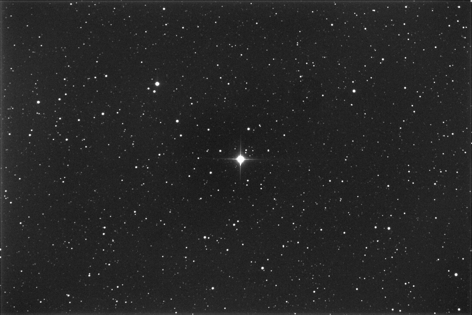 Below is an image taken with the PlaneWave 17″ unit, after the average of 10, 10-seconds unfiltered exposures, the star is the brightest object, at the center of the frame: