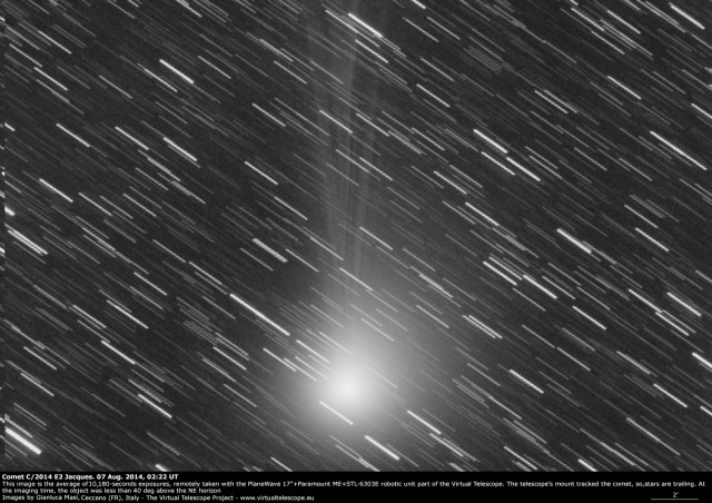 Thanks to a great sky, at the Virtual Telescope we imaged comet C/2014 E2 Jacques again this morning, remotely
