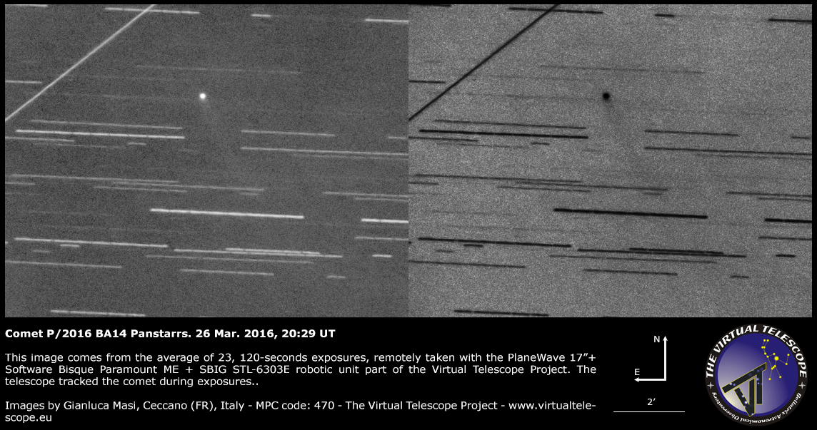 Record making comet P2016 BA14 Panstarrs: new images with tail – (26 Mar. 2016)