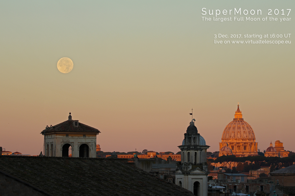Next 3 Dec. 2017 we will have the largest full Moon of the year. At Virtual Telescope we will show it live, online, while the Moon will rise above the legendary skyline of Rome. Join us from the comfort of your home.