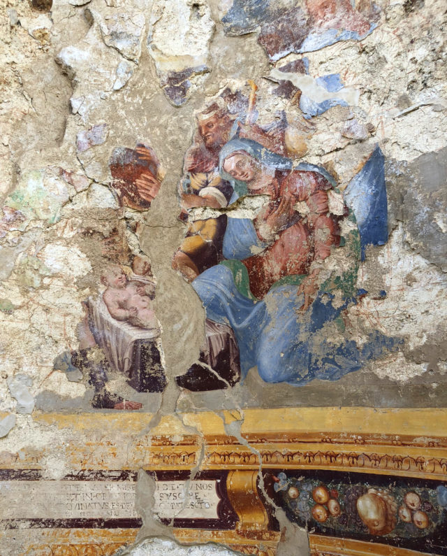 I could discover the ancient history of the place and the “Madonna della Neve” church, admiring the surviving XVI Century frescoes, which are literally going to disappear soon, if the proper authorities will not take care of them, as well as of the other ruins. Looking at them closely, it was a touching experience.