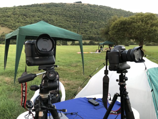I did some calculations, ending up with some results which drove my choice: I selected two fast lenses: a 35mm-f/1.4 and a 24mm-f/1.4, to be used with my two Canon 5DmIV DSLR bodies. Of course, two sturdy tripods were used, too.
