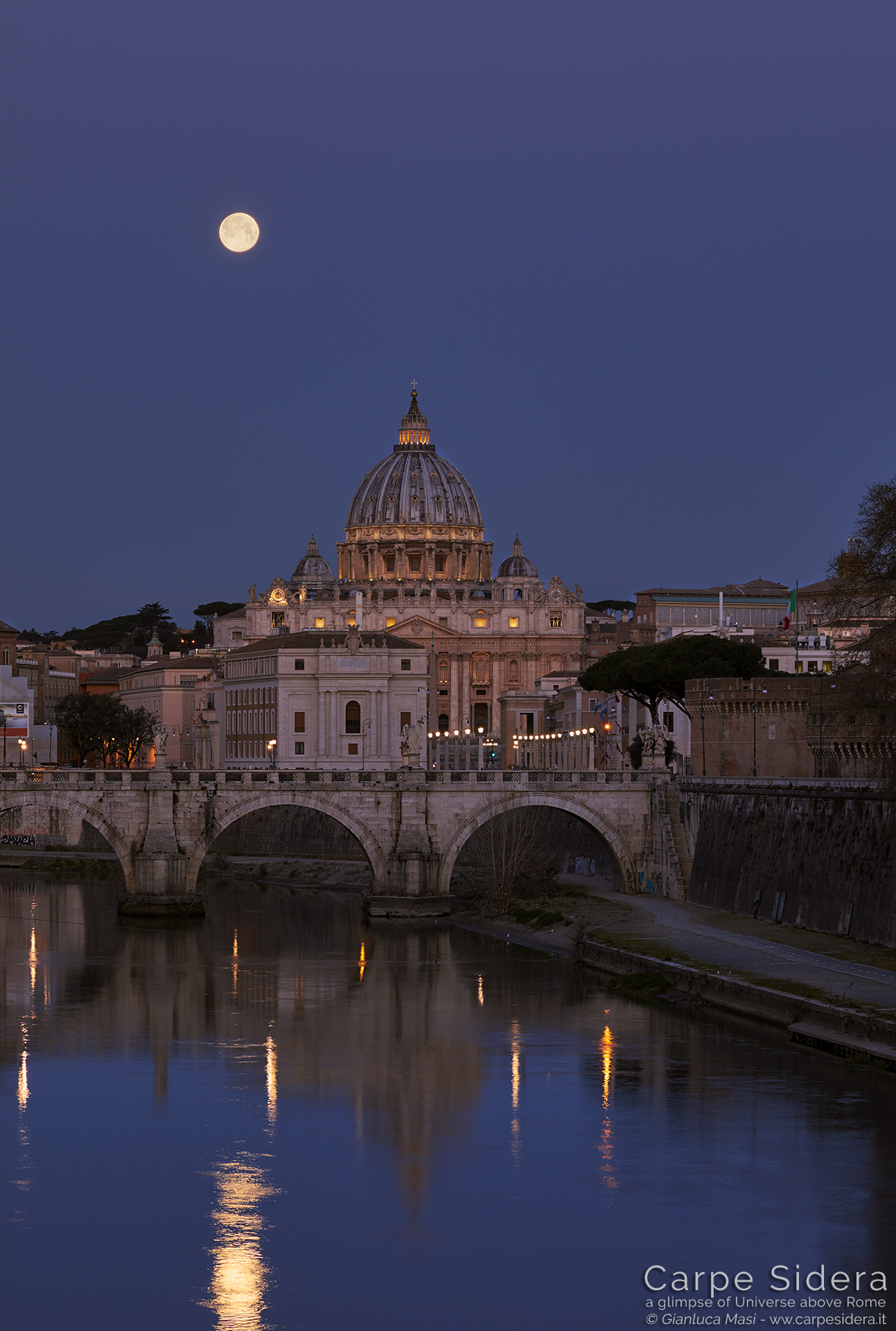 I planned a live streaming to share the Vernal Equiniox Supermoon from Rome at sunset, while it was rising above the unique skyline of Rome, with its legendary monuments. Past experience with this proved to be extremely successful.