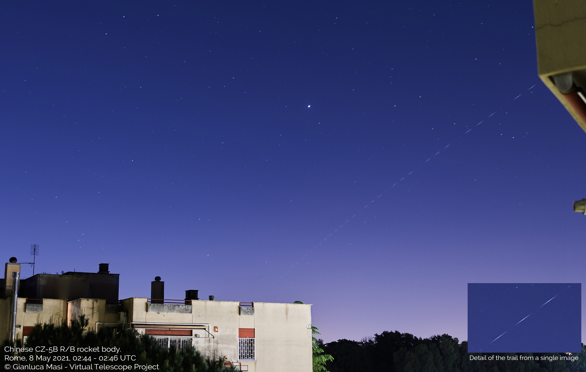 Chinese rocket body CZ-5B R/B: observation from Rome – 8 May 2021