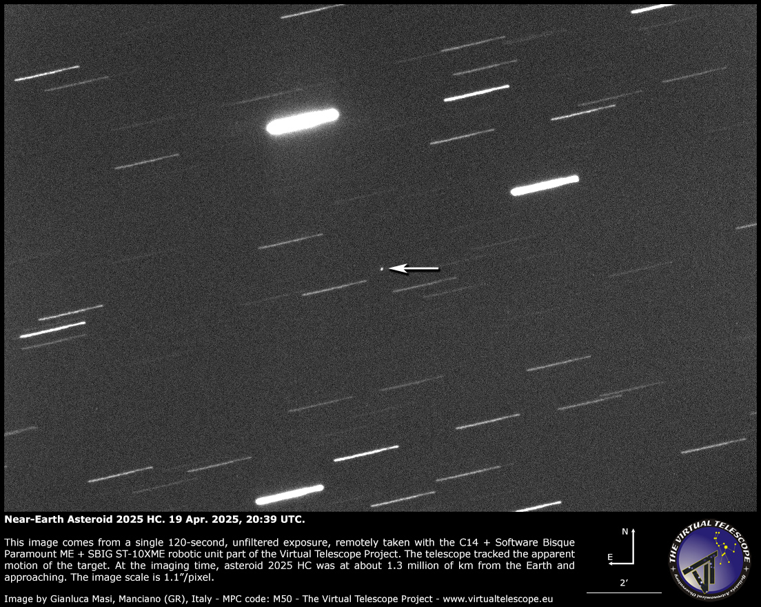 Near-Earth Asteroid 2025 HC close encounter: an image – 19 Apr. 2025