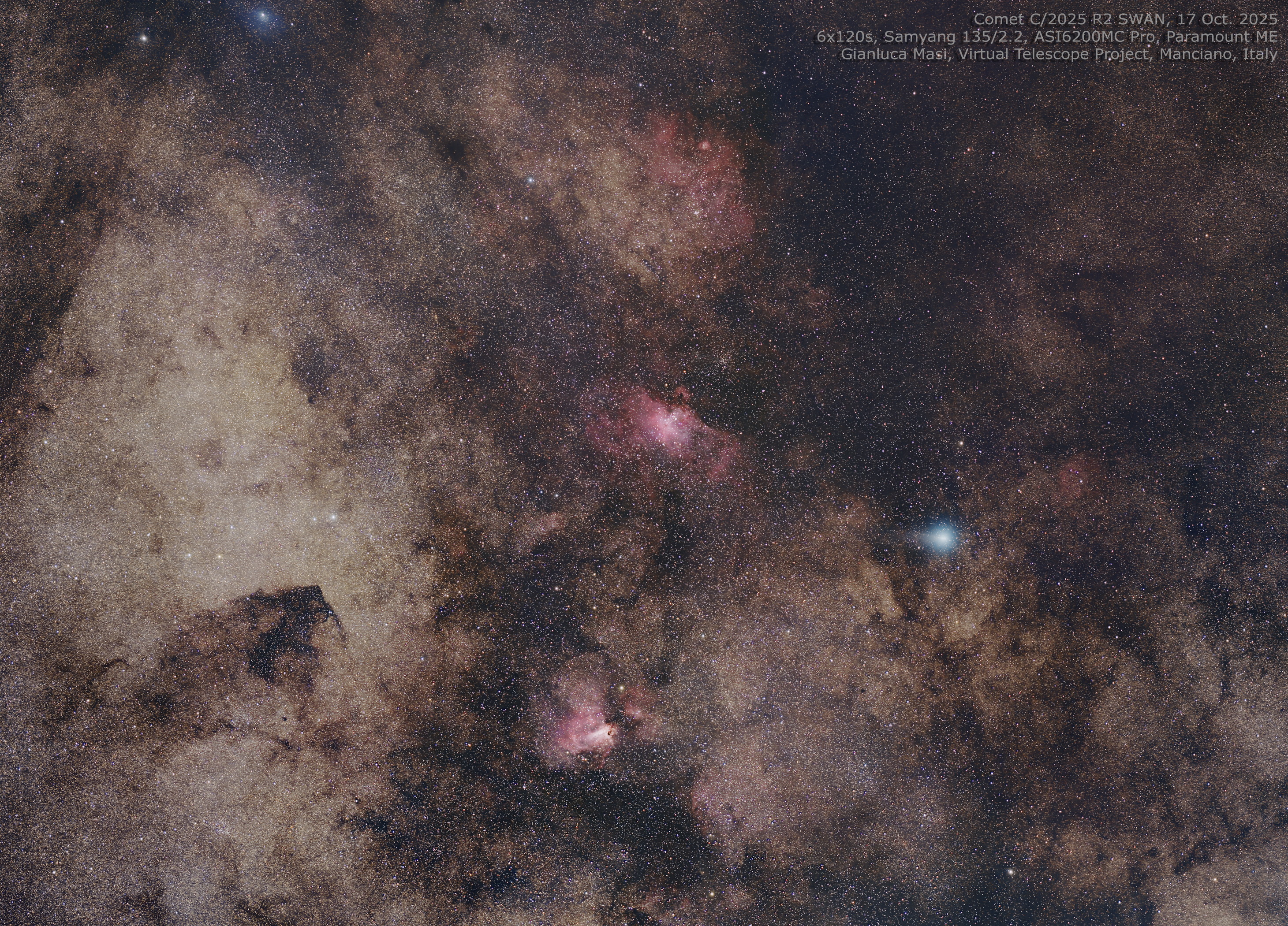Comet C/2025 R2 SWAN with Messier 16 and Messier 17 – 17 Oct. 2025.