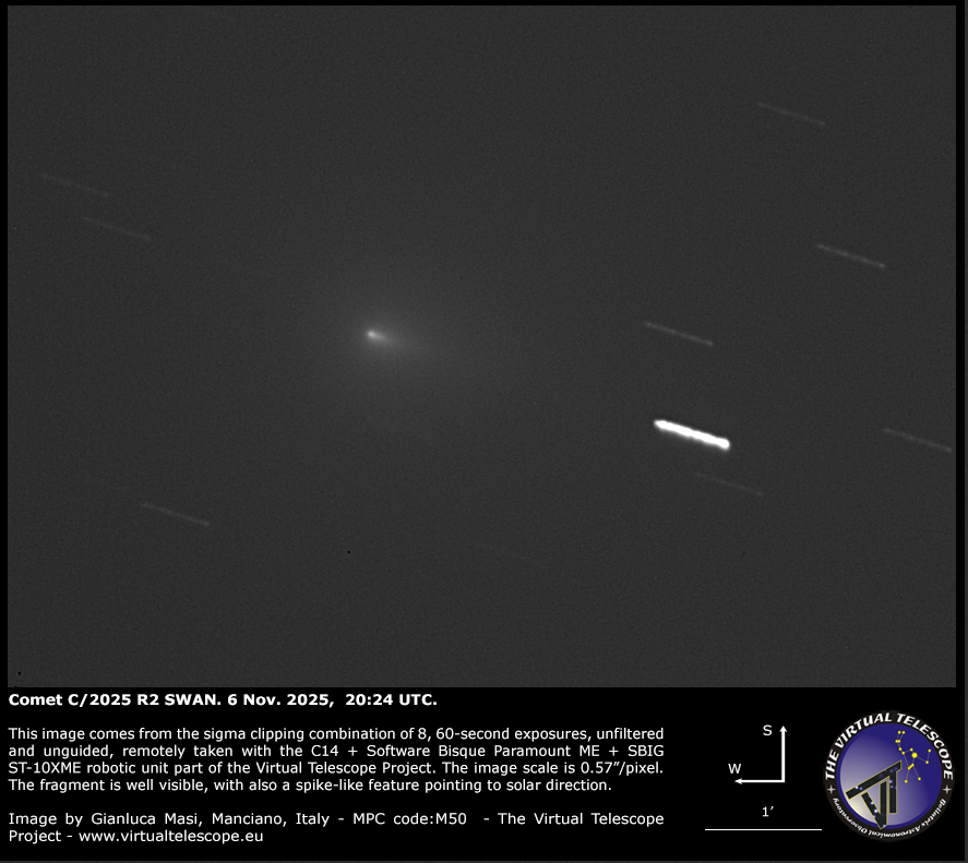 Comet C/2025 R2 SWAN fragmentation: 5 & 6 Nov. 2025 images.