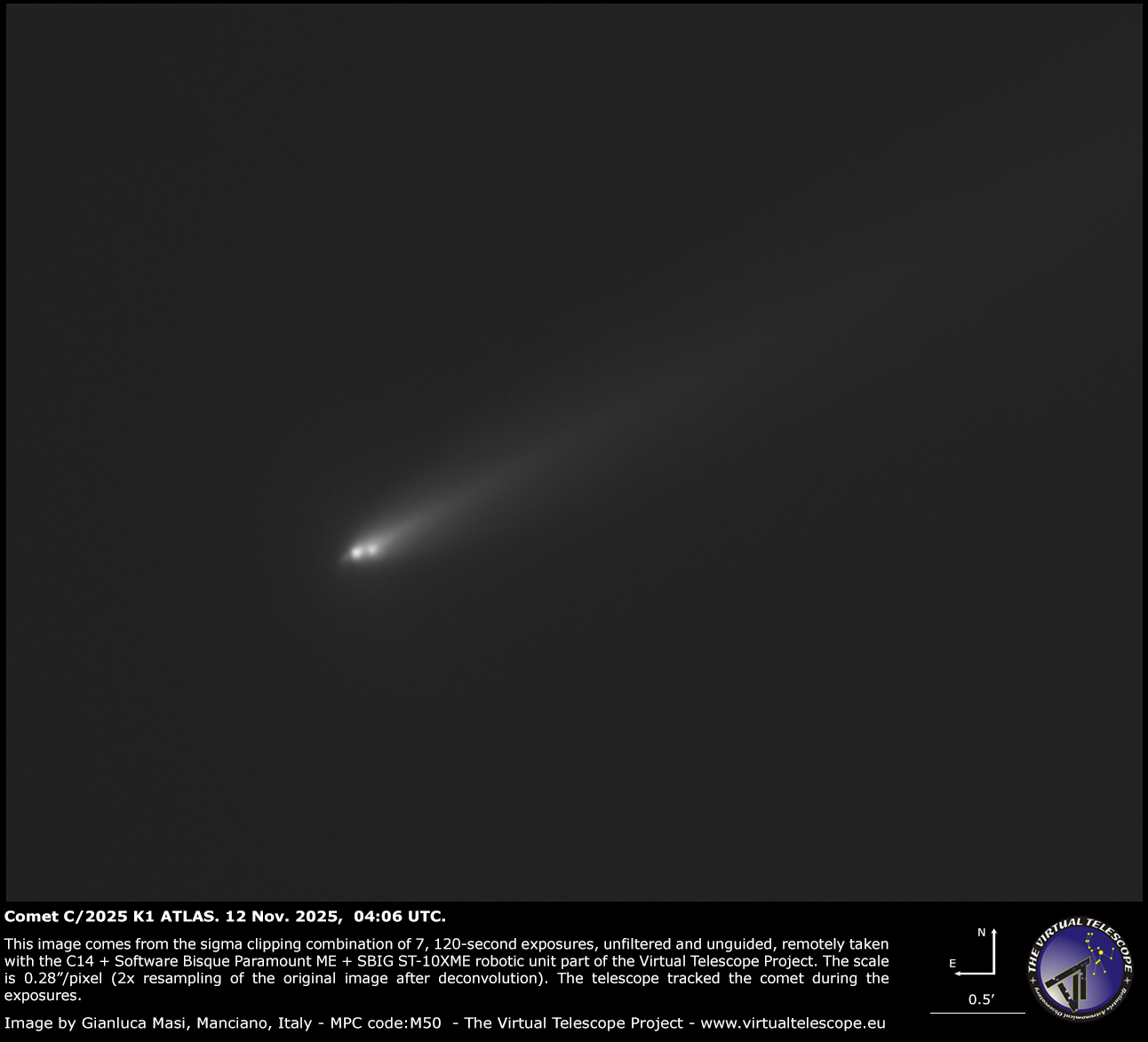 Comet C/2025 K1 ATLAS fragmentation: 12 Nov. 2025 image.