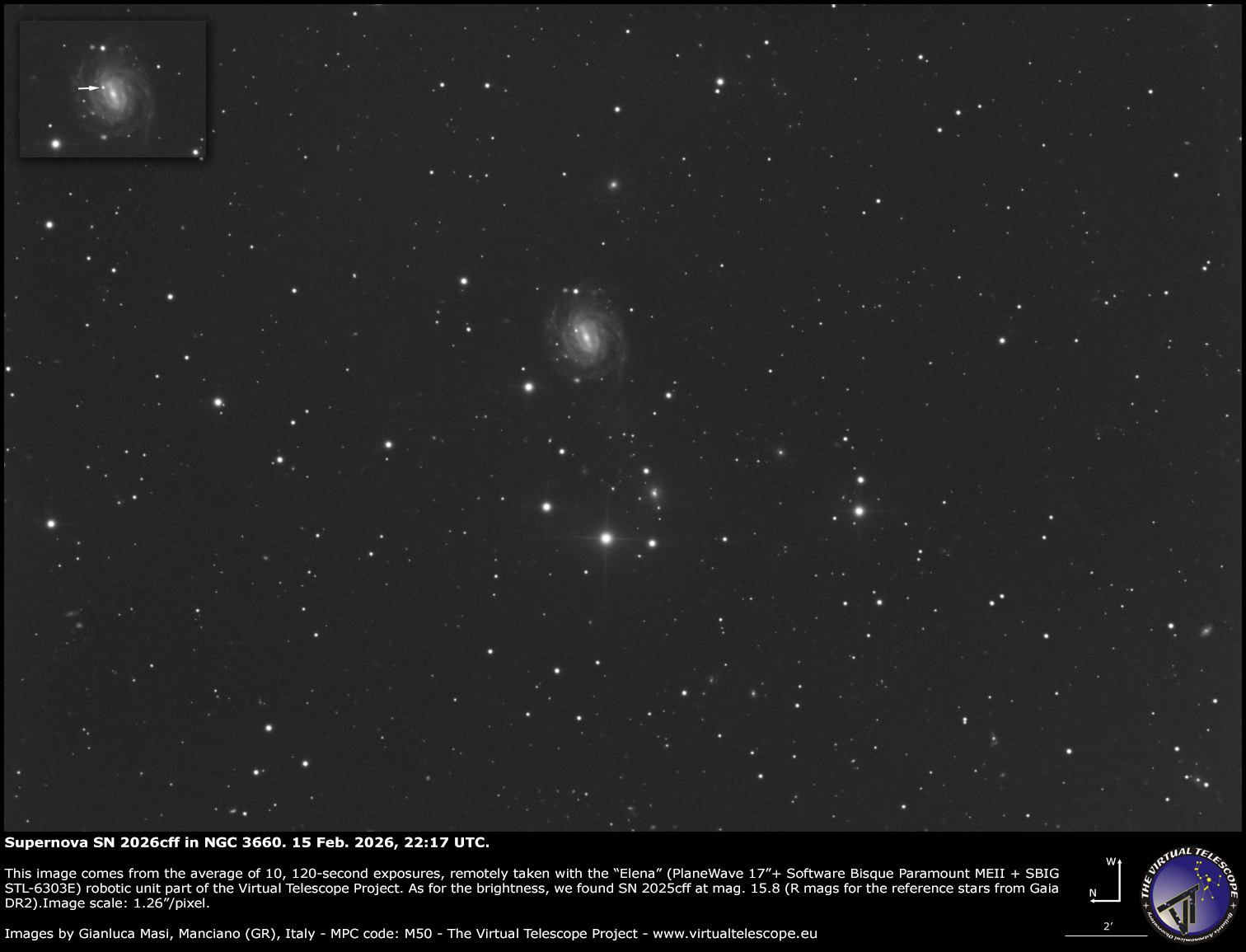 Supernova SN 2026cff in the NGC 3660 spiral galaxy: an image – 15 Feb. 2026