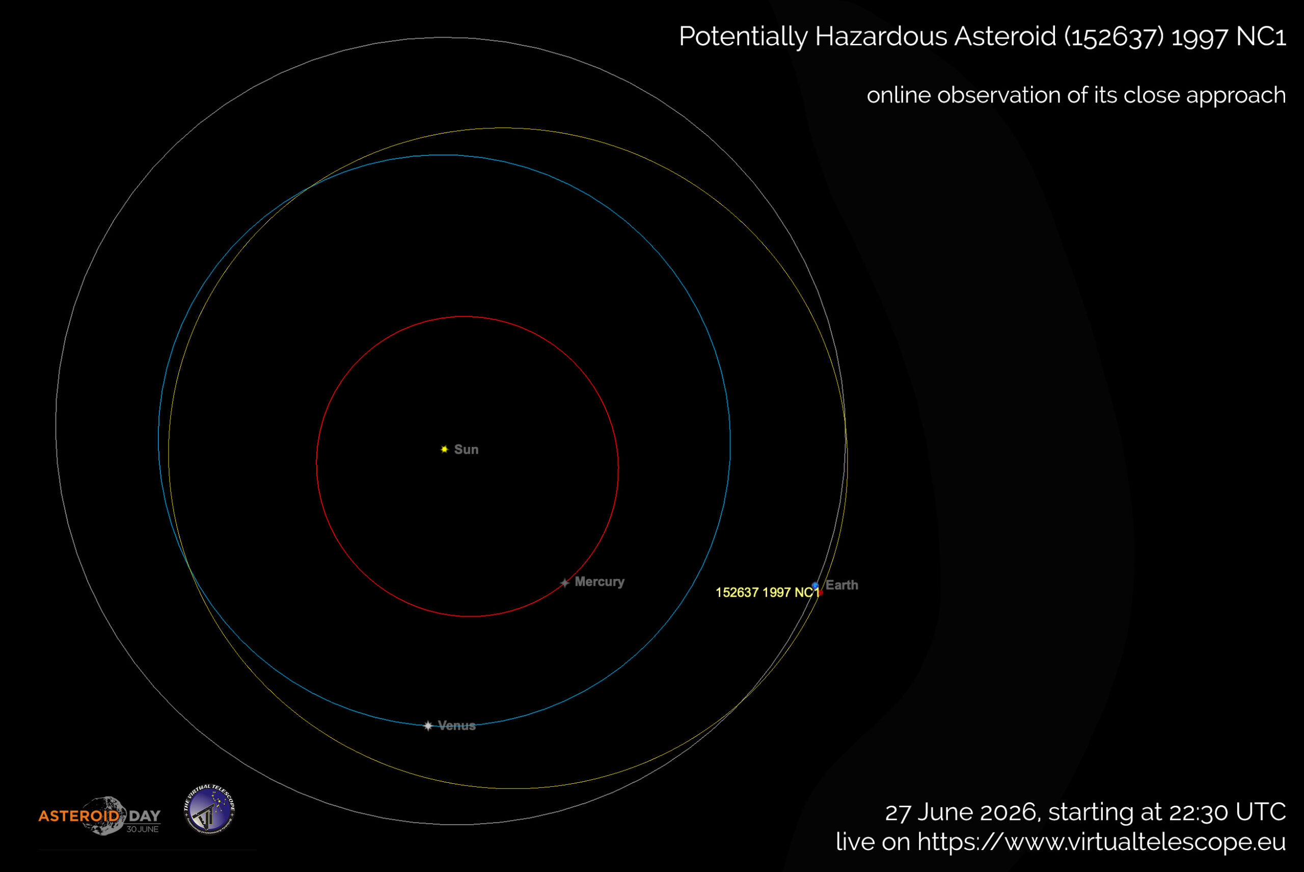 Potentially Hazardous Asteroid (152637) 1997 NC1 close encounter: online observation – 27 June 2026