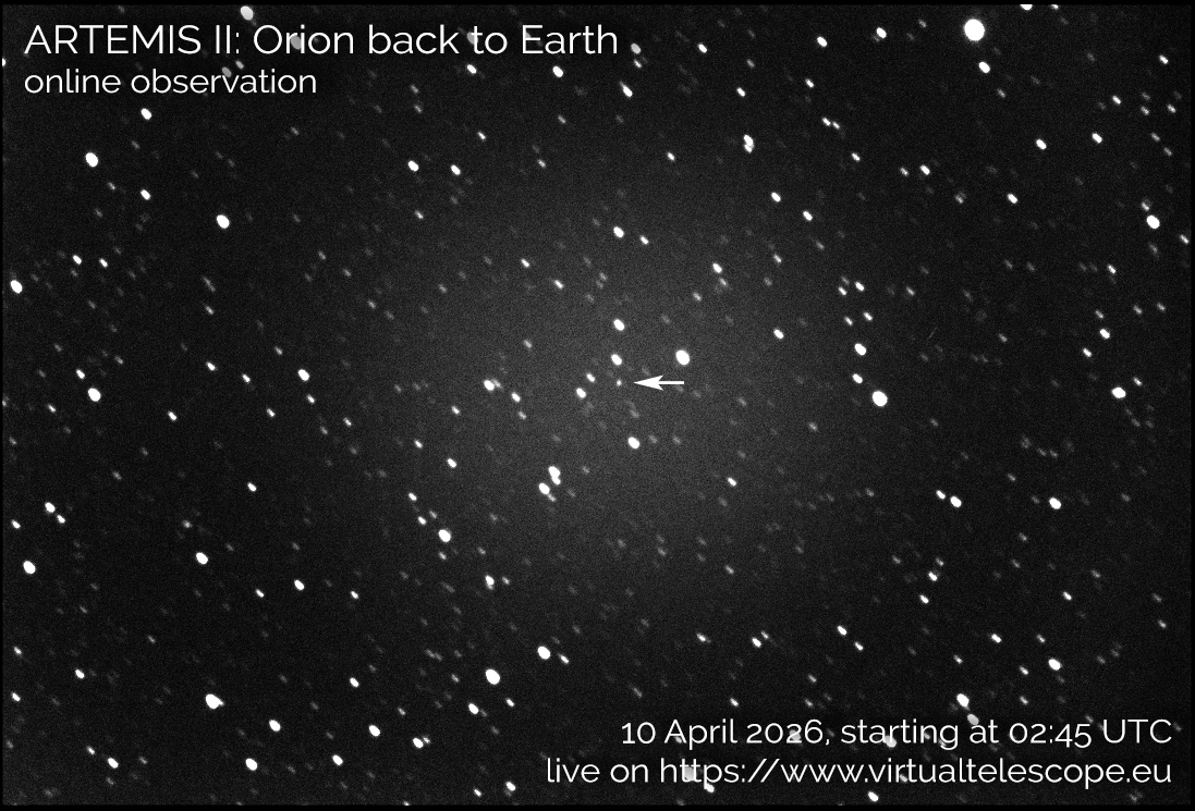After its legendary flyby with the Moon, the Artemis II’s Orion spacecraft is now coming back to our home planet. See it live via our robotic telescopes, now that it is almost ready to land!